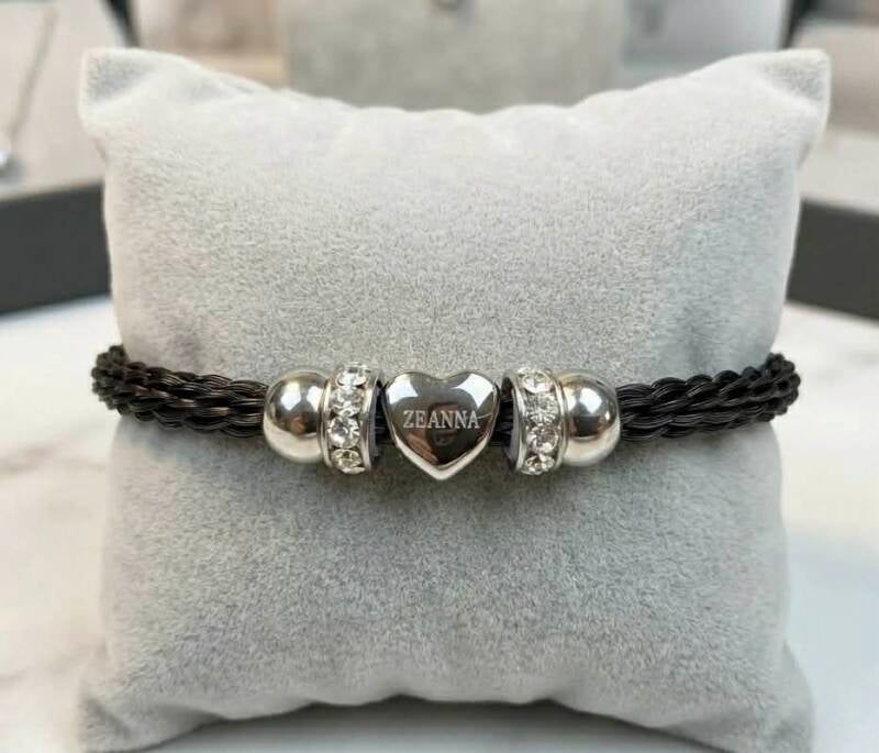 We offer a beautiful selection of bracelets, including Hand-braided Horsehair, Stainless Steel and Sterling Silver designs. Each piece is a bespoke tribute that can be personalized by incorporating ashes or hair, set into resin element in your choice of various colours For an extra personal touch, our bracelets can have custom charms added, allowing you to included initials, symbols or additional keepsakes. To ensure a comfortable fit, our bracelets are available in different sizes tailored to your wrist. As every bracelet is a custom-made piece, final prices are subject to change depending on your chosen design and specific requirements.